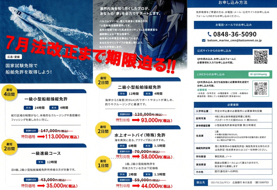 法改正前に取得をして頂きたく、今回特別料金をご用意させて頂きました!!
